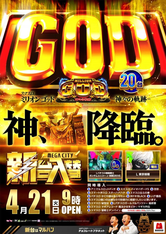 4月21日(火)大型新台入替!メガな周年WEEK始まる!!