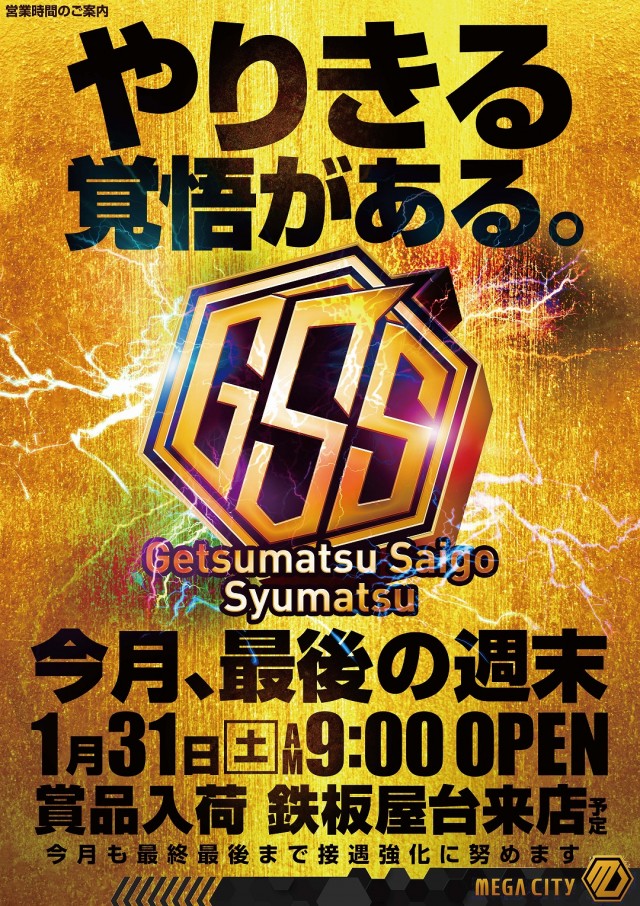 1月29日(木) MEGA感謝 朝9時OPEN(予定)