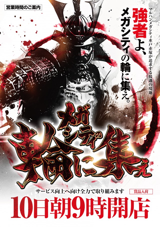4月12日(日)メガシティの誇りを胸に9時オープン!