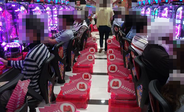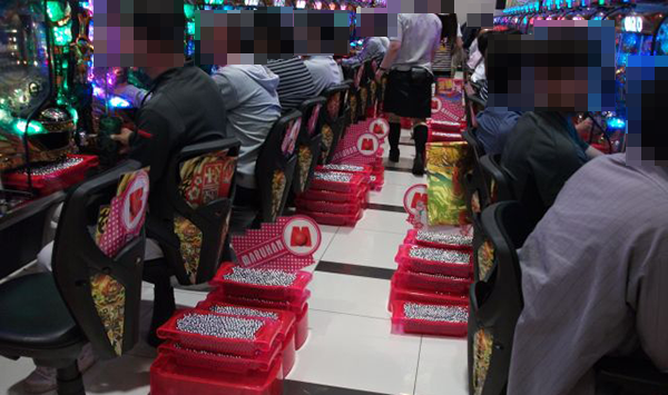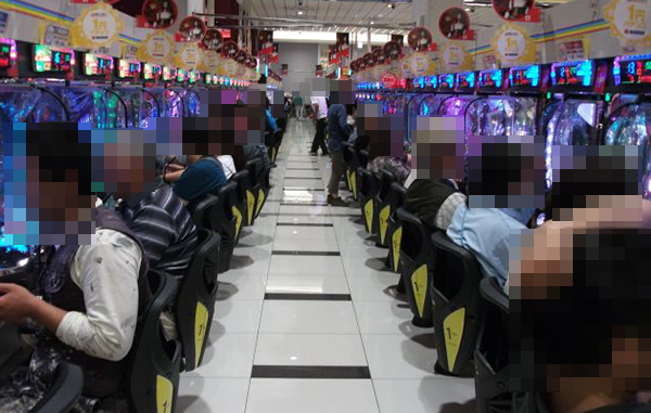 1円パチンコもほぼ全ての台にプレイヤーの姿があるほどの盛況ぶり。