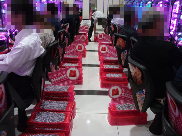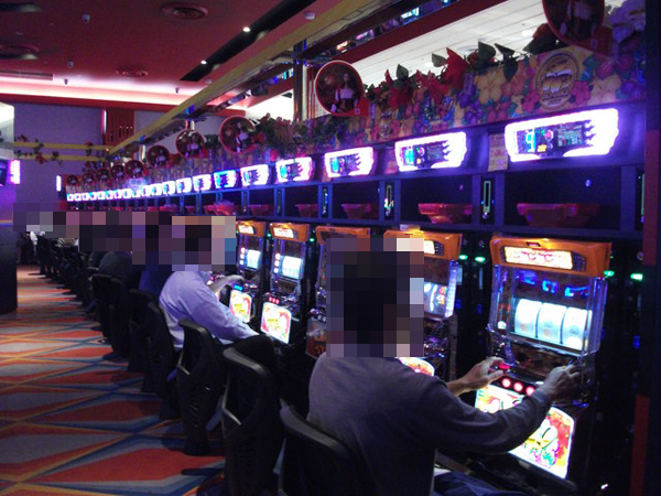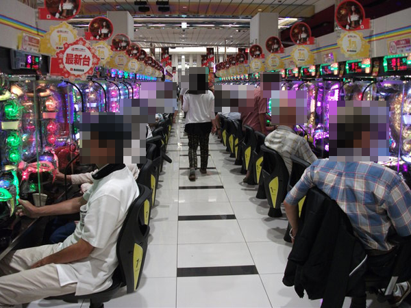 4円パチンコは定番機種の海物語シリーズを中心に賑わっており、シマのなかには心地よい波に乗るように遊技をしているプレイヤーも多数。
