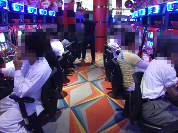 定番機種の海物語シリーズを中心に4円パチンコも賑わっており、コーナーのなかには嬉しそうなプレイヤーの姿も多数。