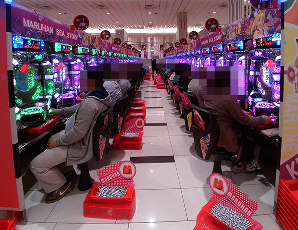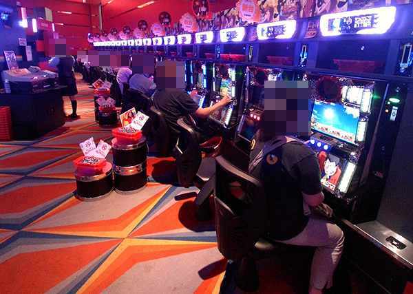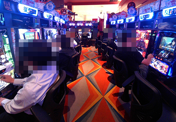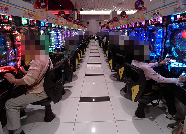 1円パチンコでも海物語シリーズは人気で、ほぼ満席といった状況。