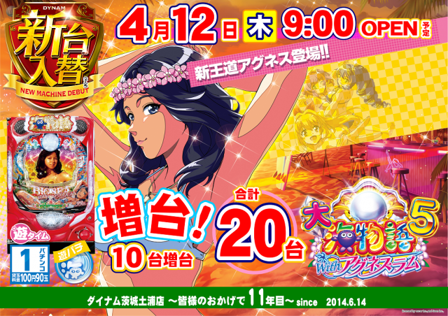 明日4月4日(木)茨城県ダイナム20店舗 9時開店予定!