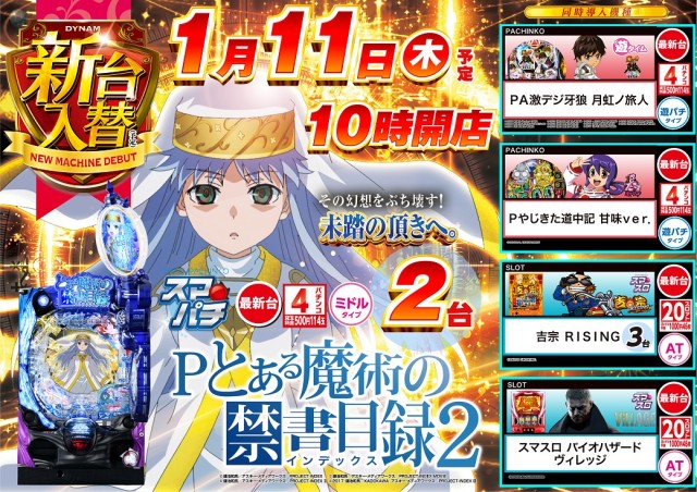 1月11日(木)新台入替 103店舗一斉10時開店予定!