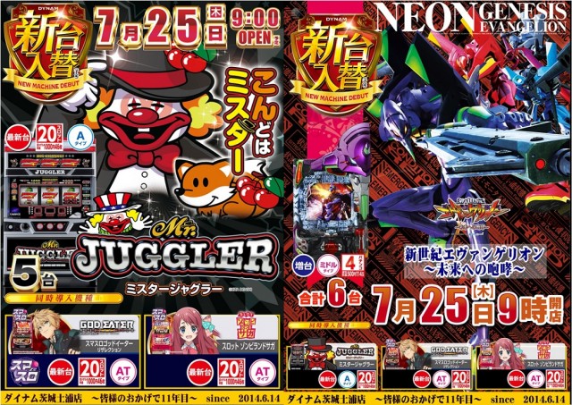 本日7/25(木)ミスタージャグラー含む、全4機種10台導入