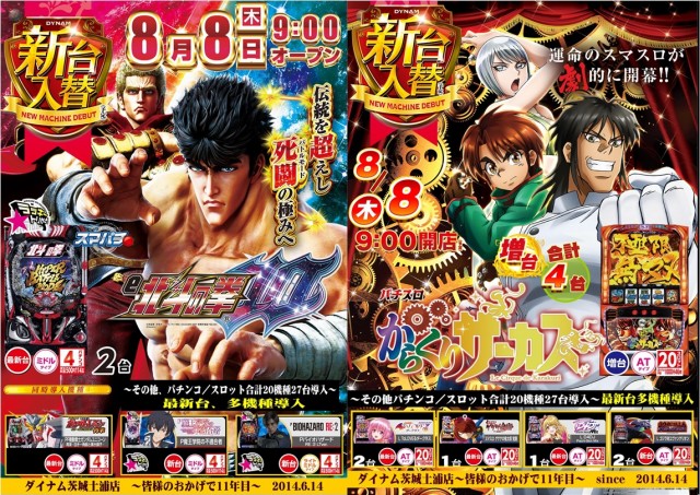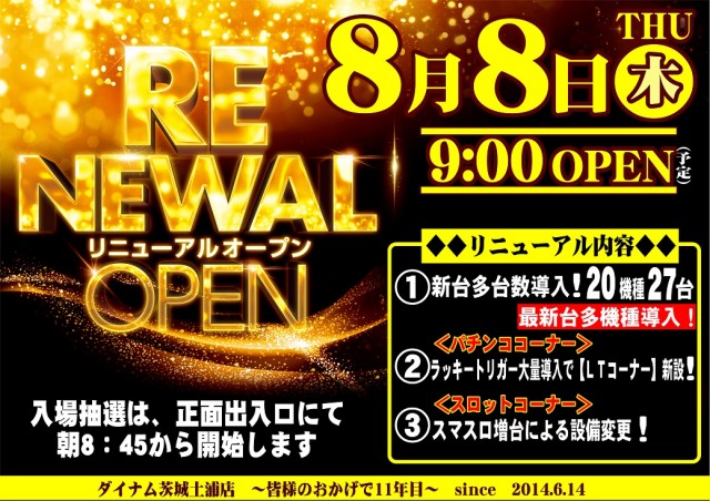 明日8/8(木)リニューアルオープン、全20機種27台導入