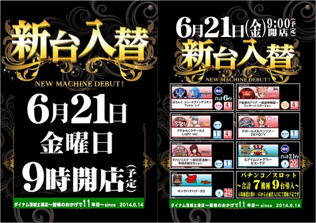 明日6/21(金)LT緋弾のアリア含む、全7機種9台導入