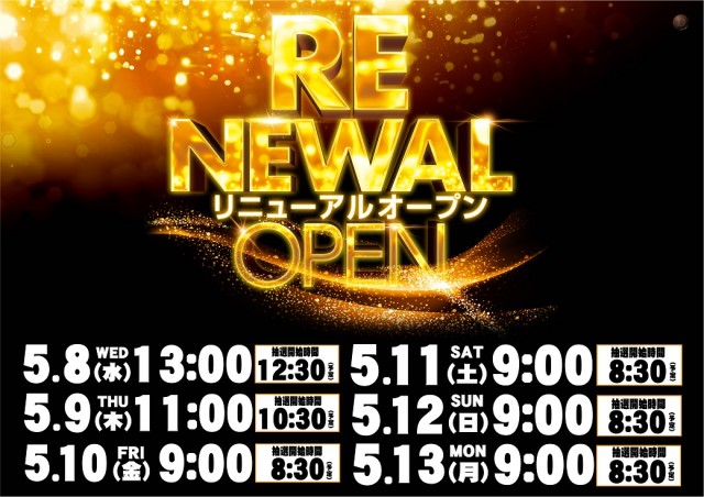 明日 5/8(水)リニューアルオープン!12:30抽選開始