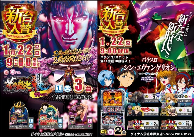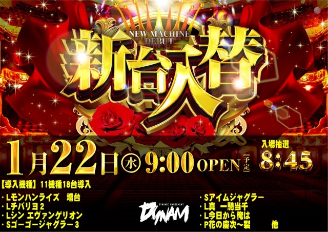 明日1/22(水)新台入替!全11機種18台導入!(予定)