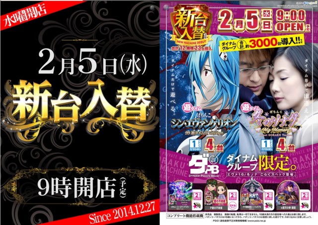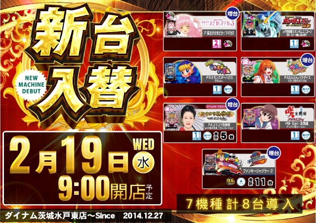 明日2/5(水)新台入替!全12機種23台導入!(予定)