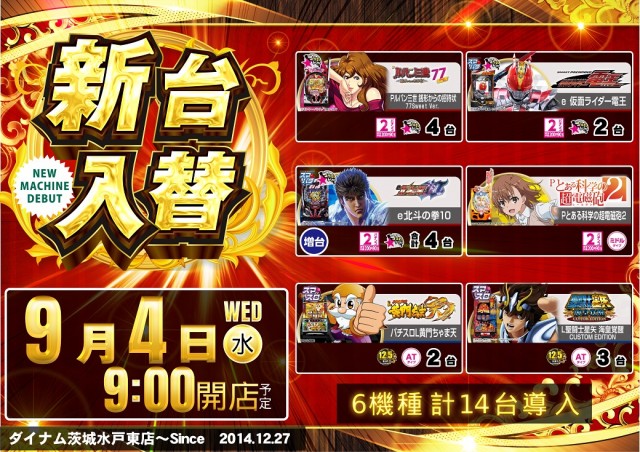 本日9/4新台入替!e 仮面ライダー電王含む、全6機種導入!