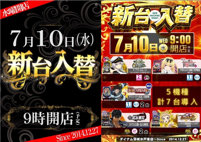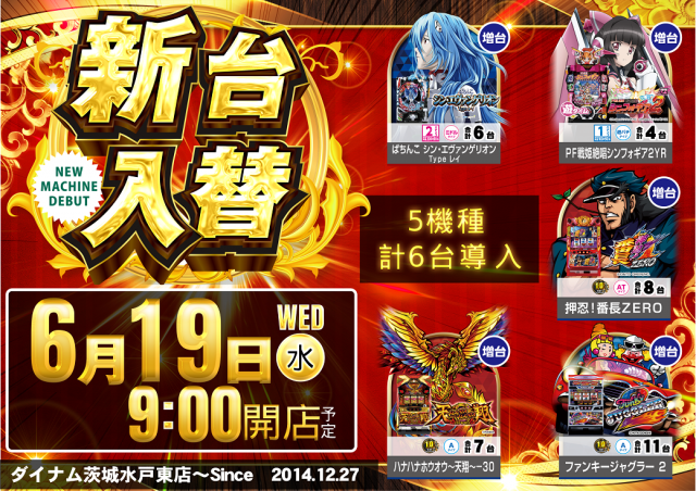 明日6/5新台入替!パチンコ/スロット全5機種6台導入!