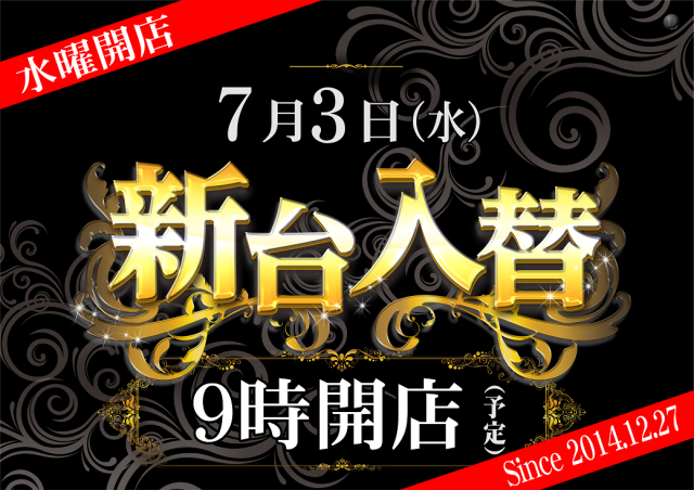 本日7/3新台入替!沖ドキ!BLACK含む全3機種10台導入
