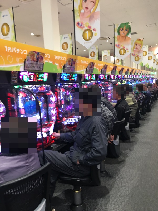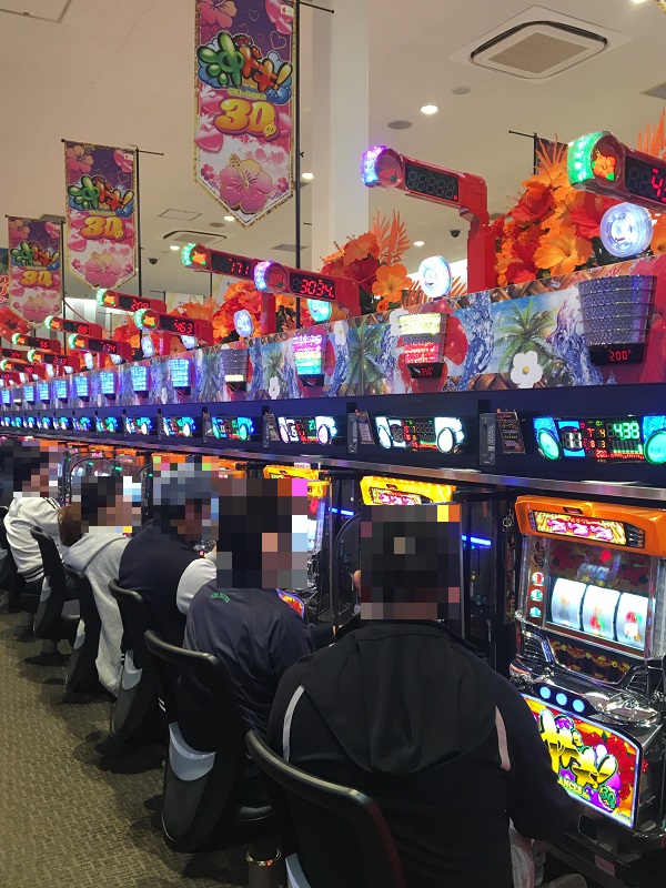 時刻は15時。この日、多くのプレイヤーの笑顔を見ることができたのは20円スロットで、特に好調だったのが「沖ドキ!-30」。機種の性能を最大限まで引き出すプレイヤーを多数目撃。満面の笑みで遊技する姿を見ることができた。その表情からは羨ましさを感じるほどだ。