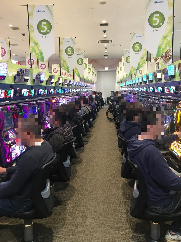 5円スロットでは終日ほぼフル稼働をキープ。パチスロをゆったりと楽しむプレイヤーであふれていた。