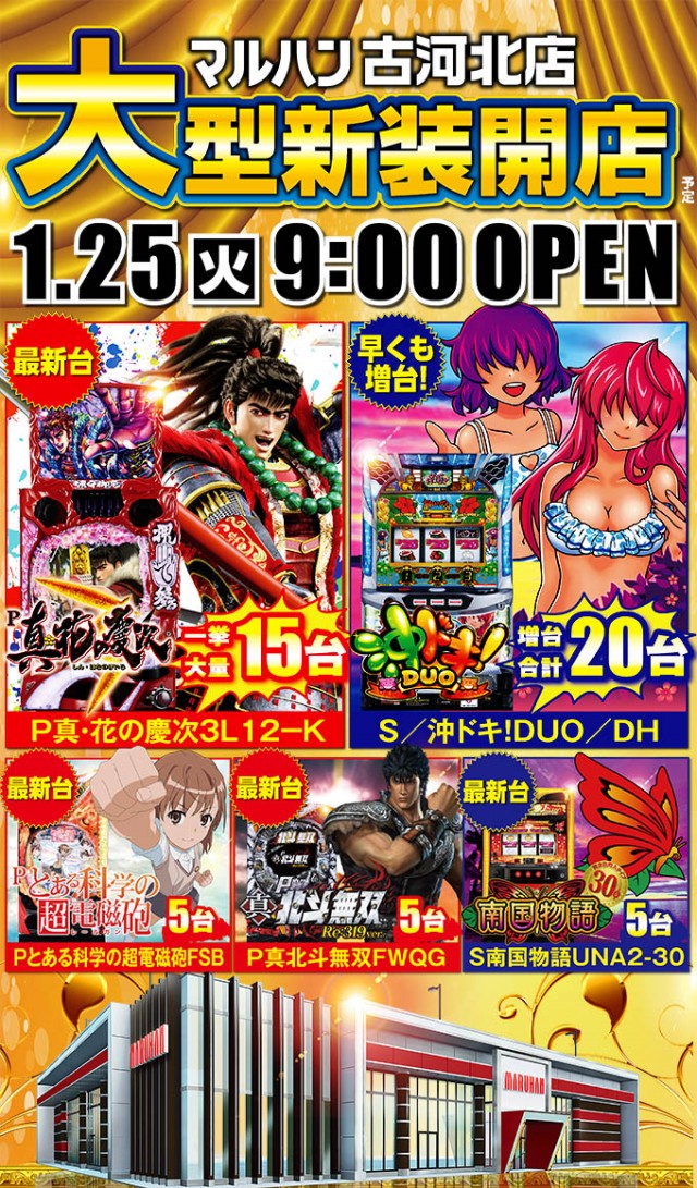 マルハン古河北店 本日新装開店 朝9時オープン!
