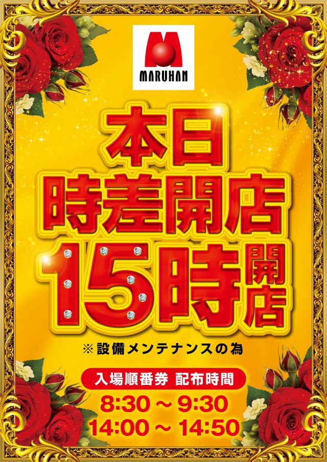 マルハン古河北店設備メンテナンスの為15時オープン!!