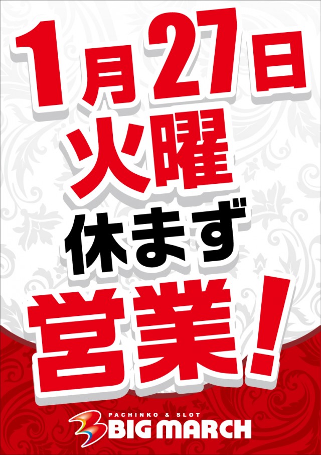 明日1月7日水曜日は新年一発目の新台入替9時オープン!!
