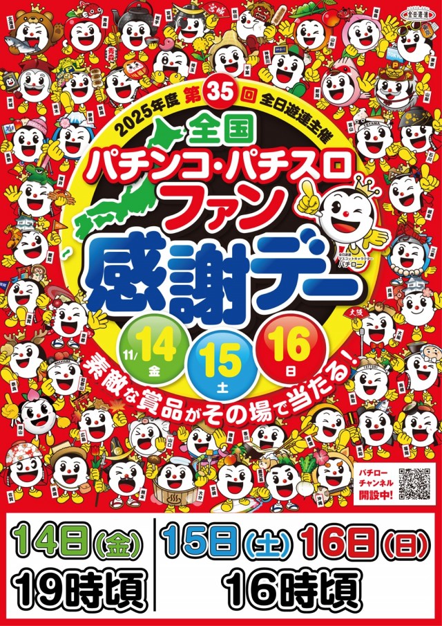 本日19時からファン感謝デー開催!ご来店お待ちしております。