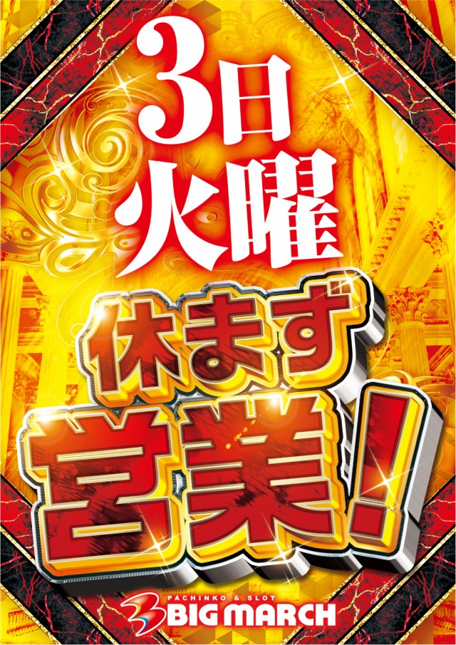 明日はお休みになります。6日の新台入替にご期待ください!