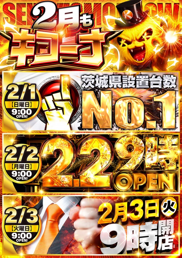 2月2日(月) 県下最大1111台 【抽選8時30分】