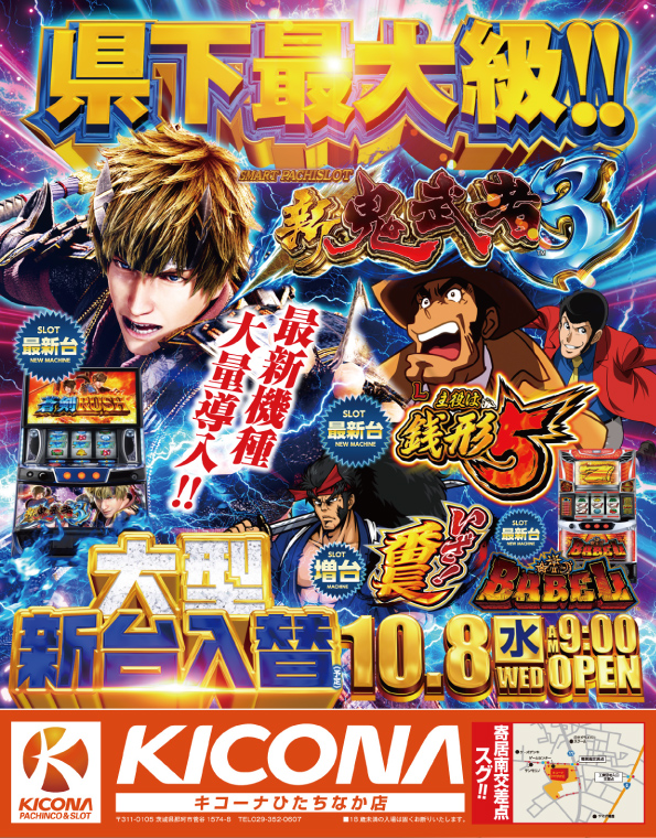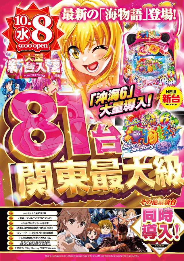 10月8日大型新台入替 関東最大級の沖海6を始め156台導入