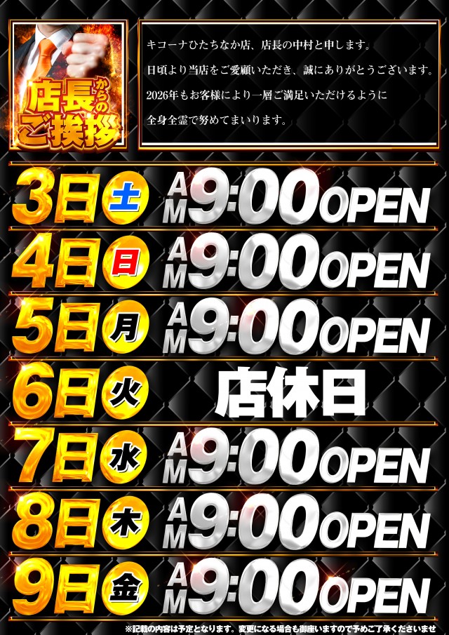 1月6日は店休日です。