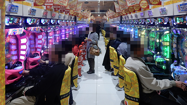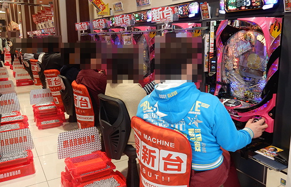 定番機種である海物語シリーズもにぎわっており、輝くような笑顔を目撃。