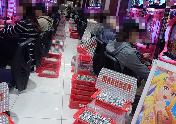 各台計数機が導入されている1円パチンコの稼働率も高く、プレイヤーたちは快適に楽しめている様子。