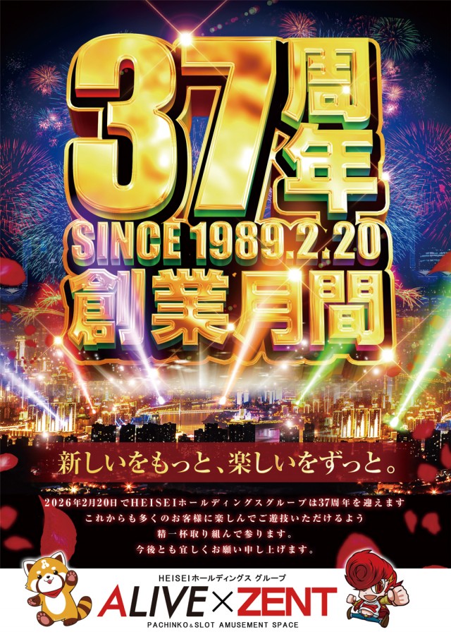 本日2月20日は【創業日&全店合同総付景品配布予定】