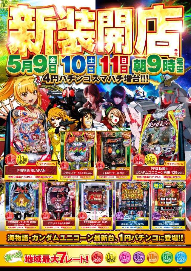 【新装開店】新台9機種一挙導入&スマパチコーナー増台!!