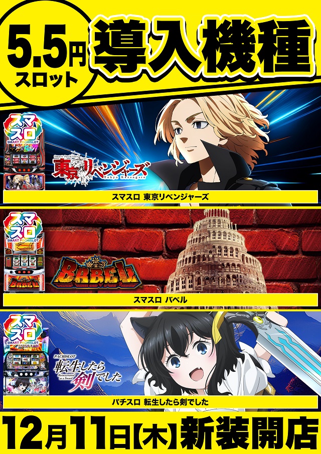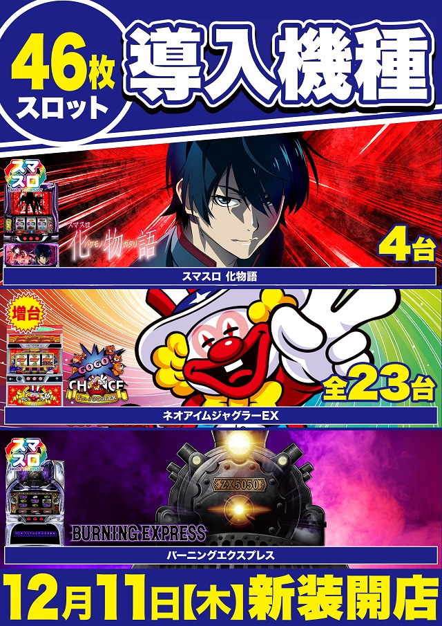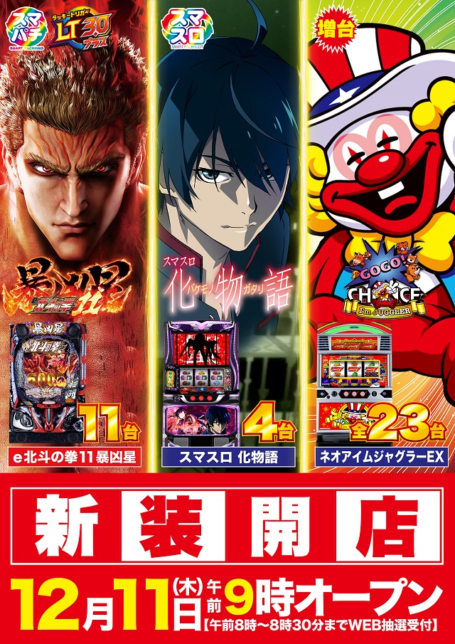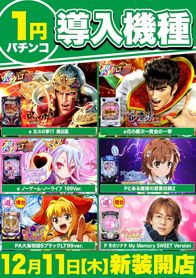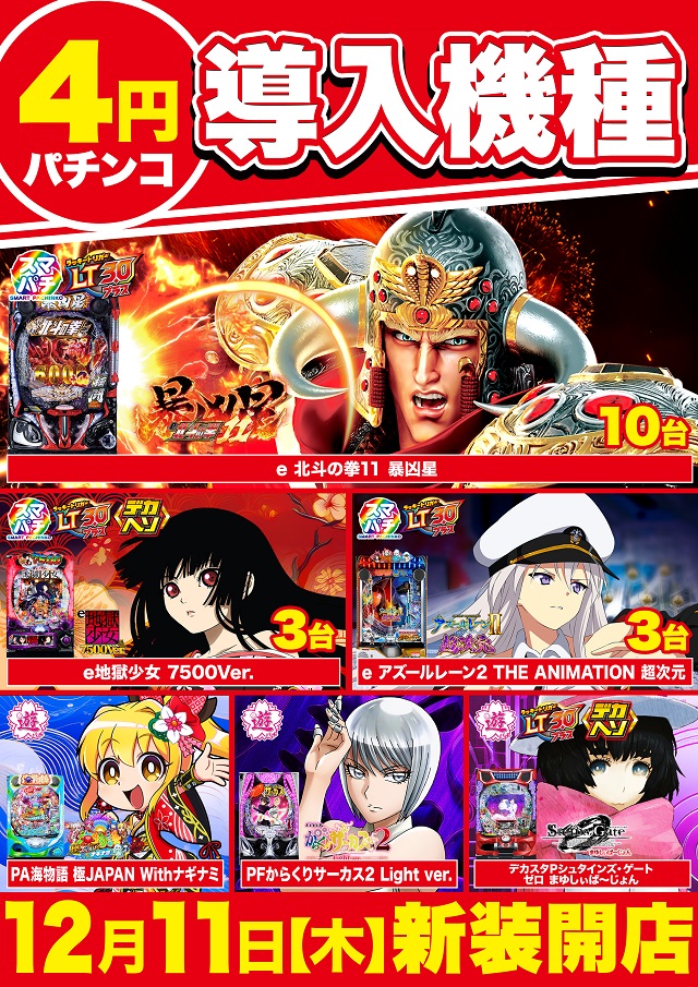 12月話題の最新台を多数導入済!!是非ご来店下さい。