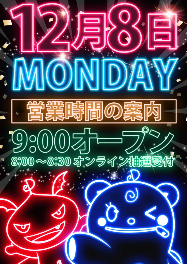 12月12日(金) HAPPYな週末を!午前9時オープン!!