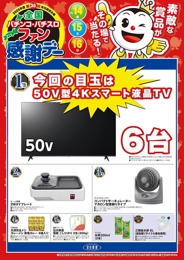 11月14日(金)ファン感謝デー!午前9時オープン!