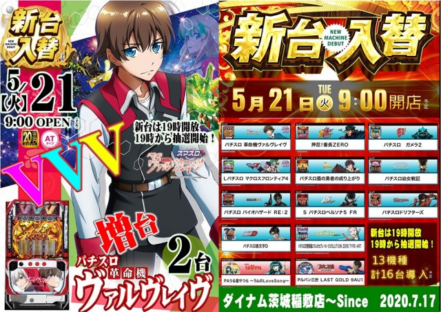 本日5/21新台入替(予定)!抽選は8:30~実施します。