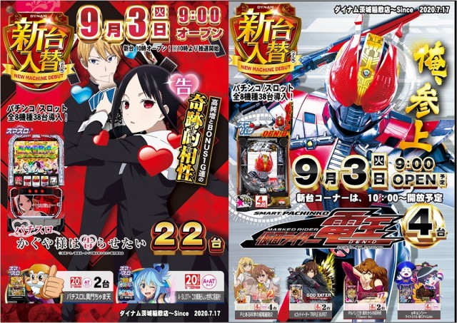 本日9/3(火)新台入替(予定)!新台抽選は10:00実施!