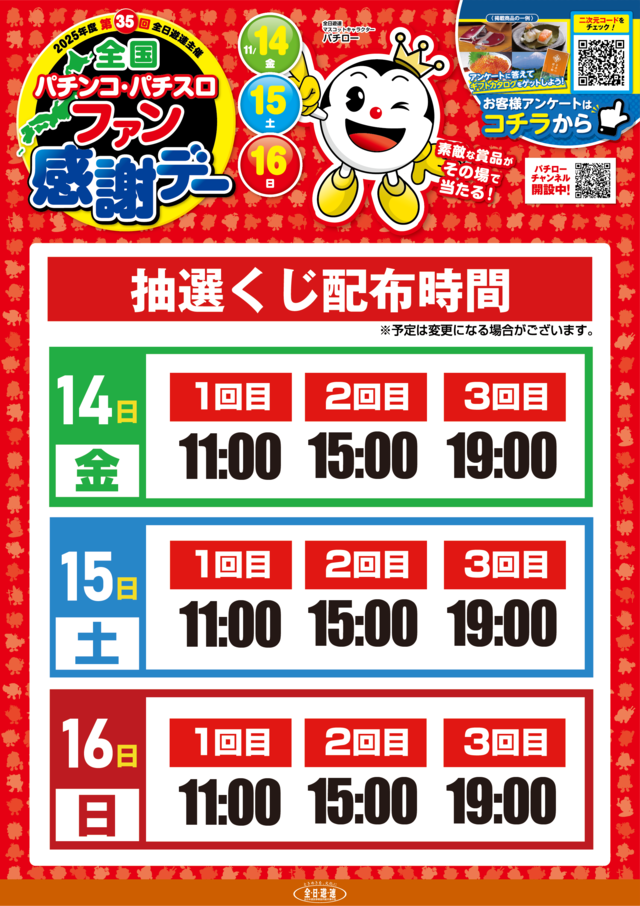 1位 10月18日(土) 2位 11月5日(水) 3位 11月15日(土)
