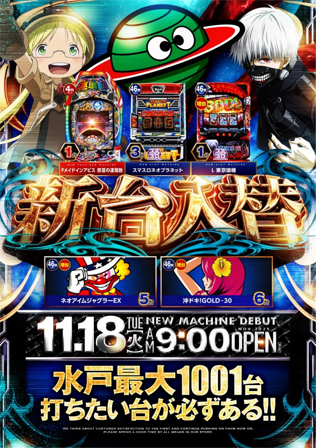 11/18(火)新台入替朝9時オープン!8:30から抽選開始