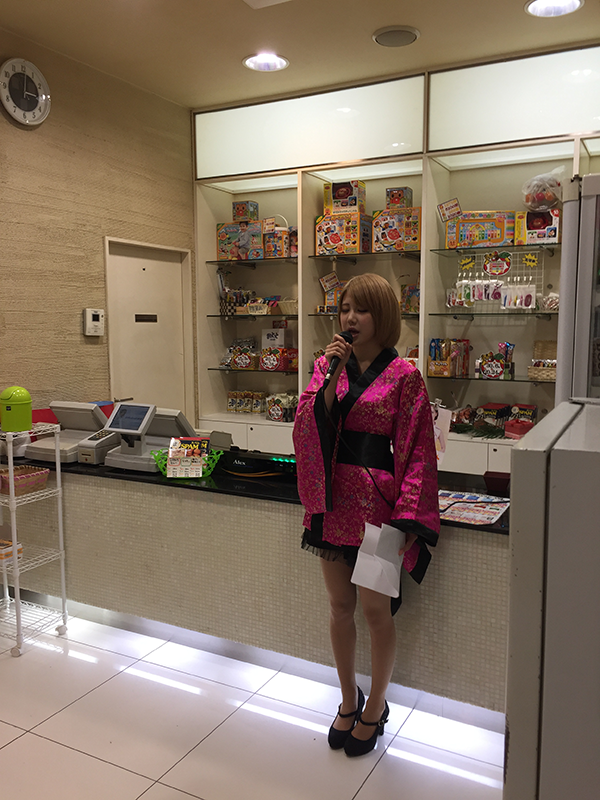 マイクでお客さまにご挨拶。ステキな声が店内を彩ります☆