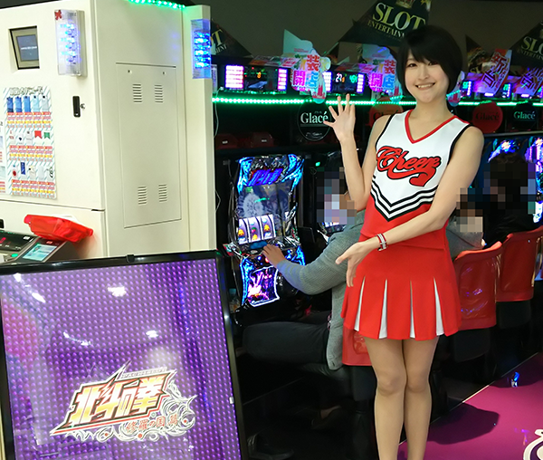 パチスロコーナーでは、ななちゃんも実戦中の「パチスロ北斗の拳 修羅の国篇」が満席で大盛況!