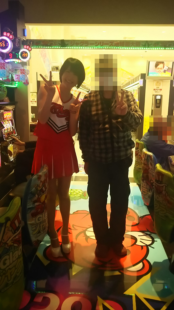 今回はチアガール風コスチュームで登場です! 来店の看板も用意してもらって嬉しいね~♪