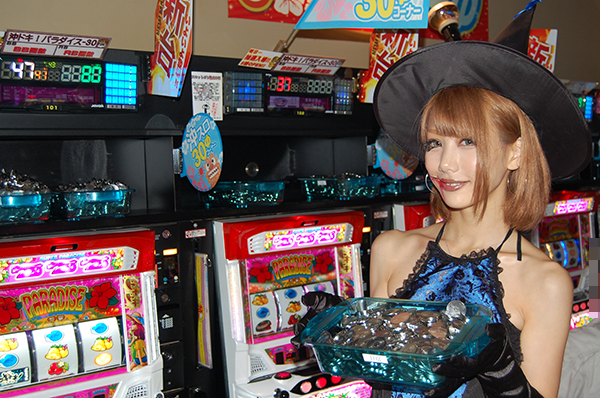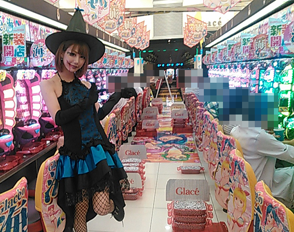 また、パチンココーナーにも笑顔のお客さまが多数! 「CR牙狼GOLDSTORM翔」や海物語シリーズなどに華やかな光景が広がっていました。