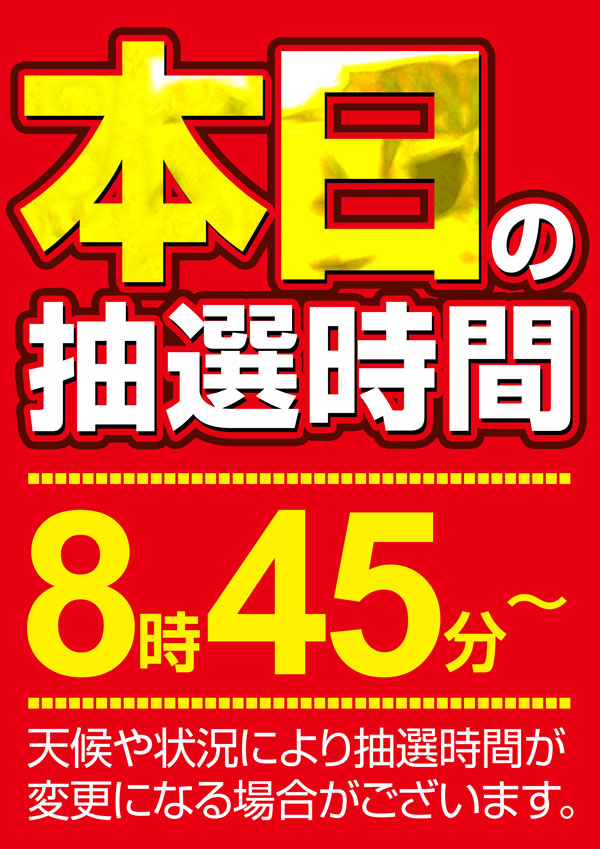明日1月16日【日】9時スタート!抽選時間8:45~
