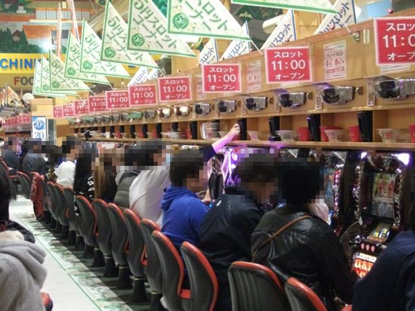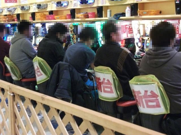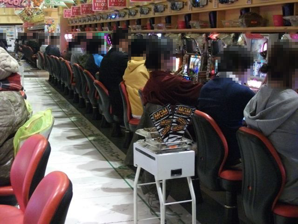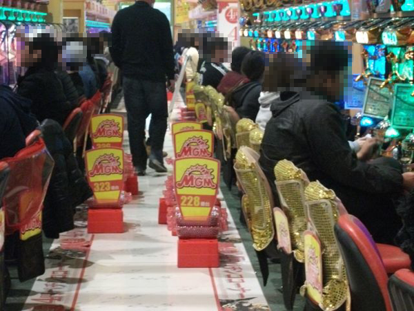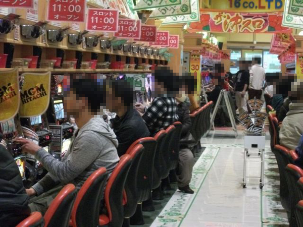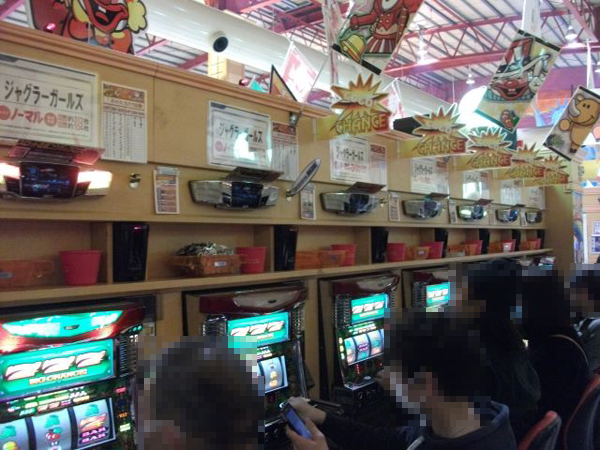 貸し玉料金が20円と5円の2種類あるパチスロコーナーでは、5円パチスロがより高い盛り上がりを見せていた。