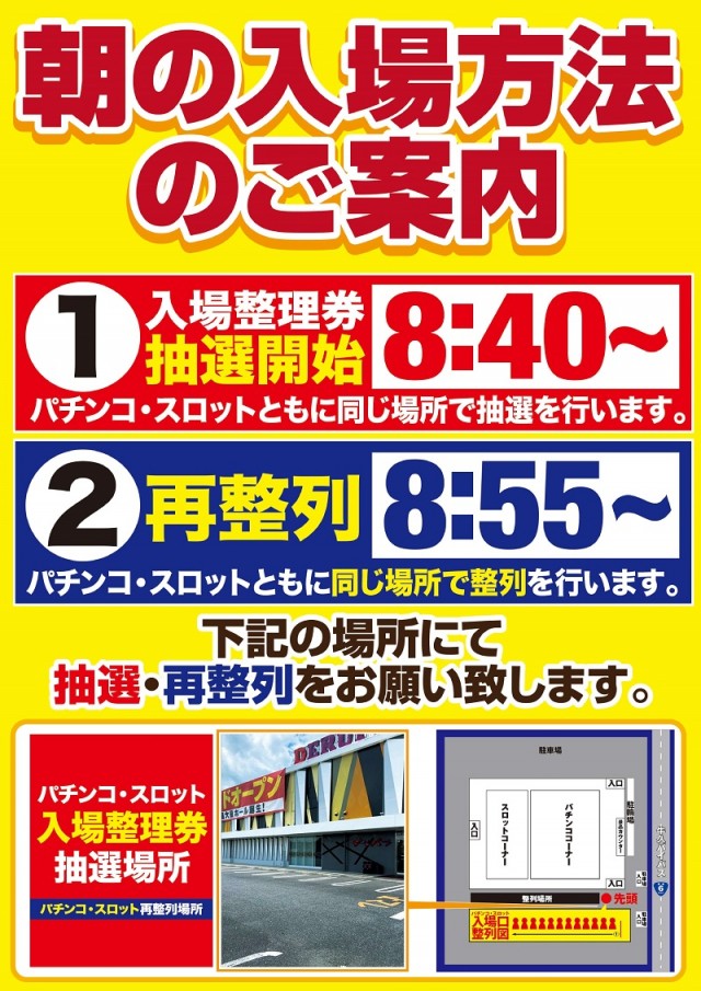 8:40までにお集まりのお客様対象にて入場順番を決める抽選を行ないます。 |