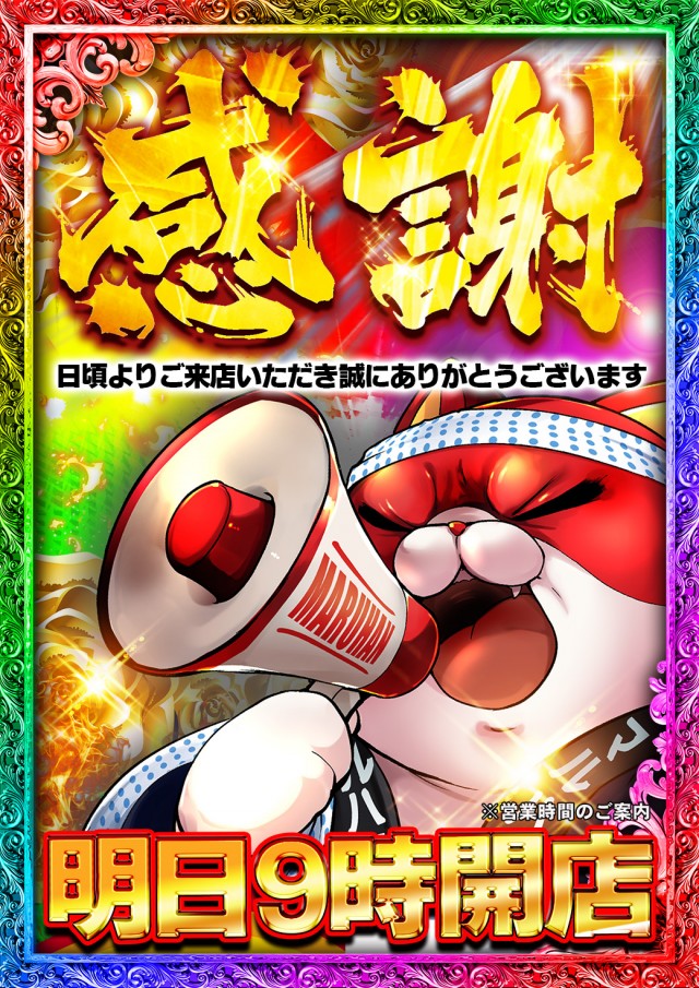 🌈明日も引続き!マルハンでお楽しみください!🌈明日9時開店🌈