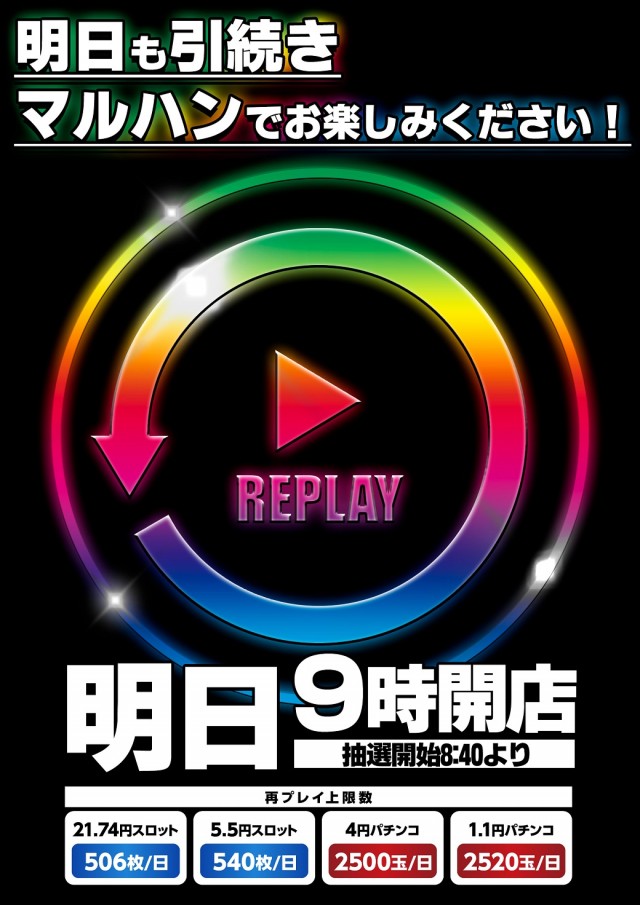 ☆明日、茨城栃木マルハン全店一斉9時開店☆