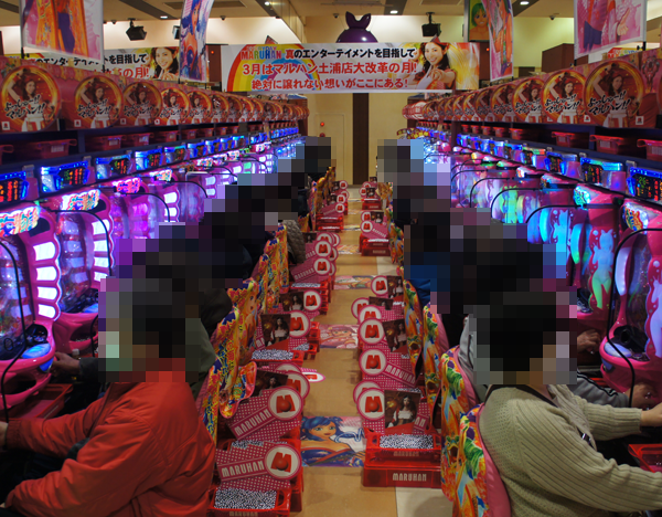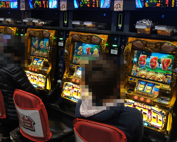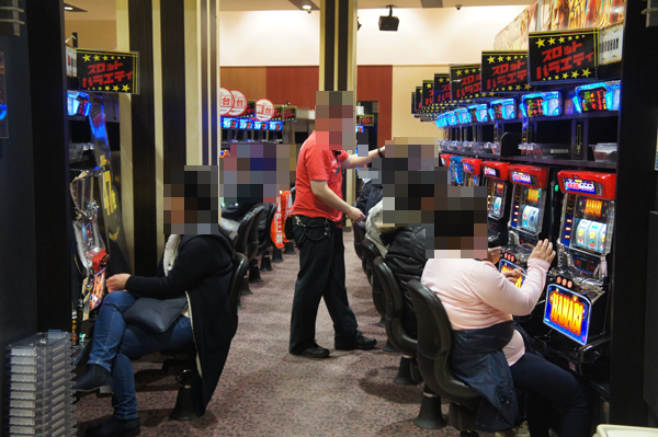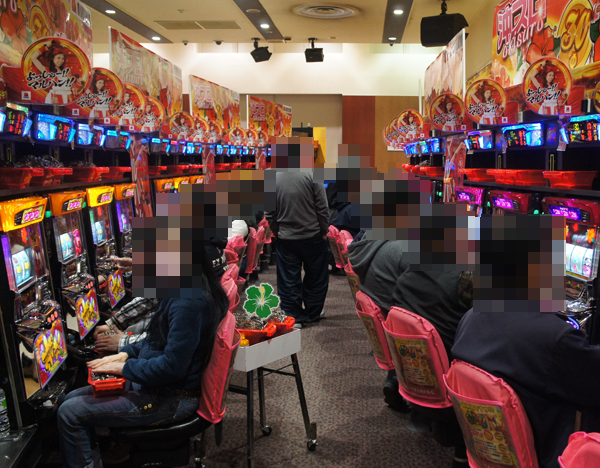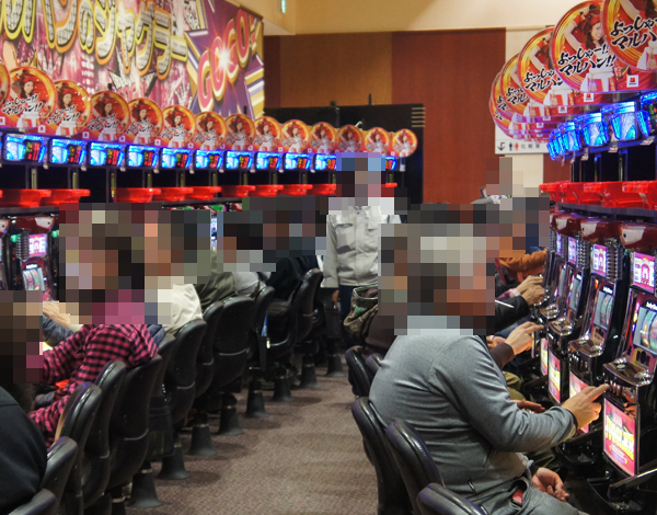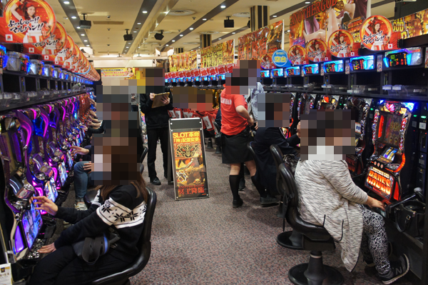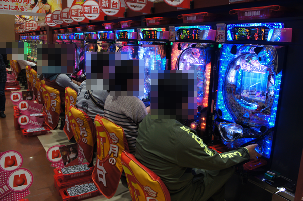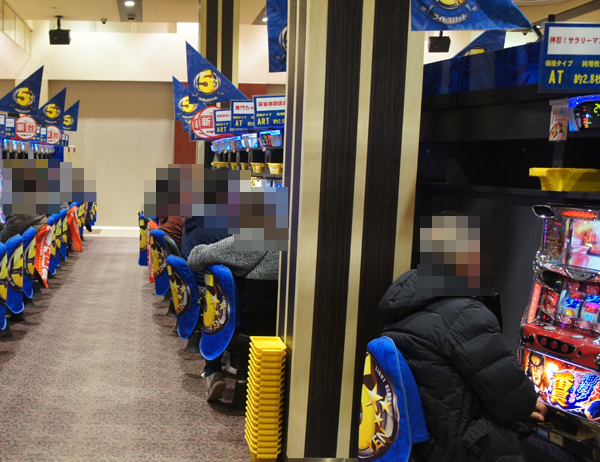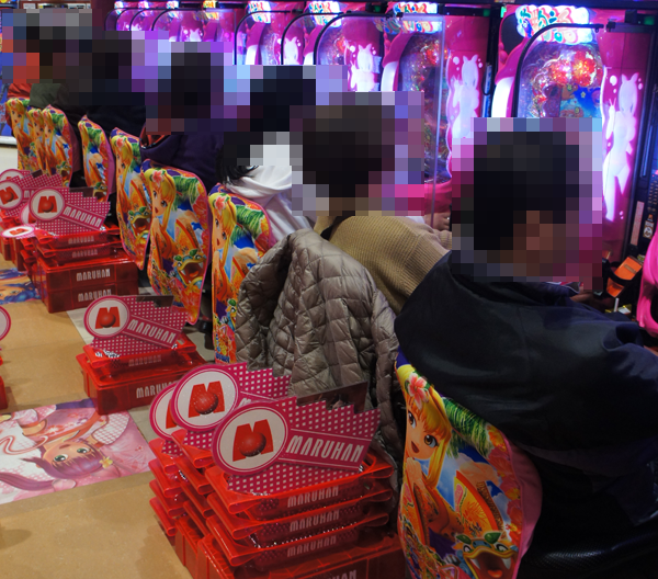 各シマにおいて、シャッターチャンスに遭遇。ユーザーからの厚い信頼を印象づける光景があった。「マルハン土浦店」の一面はパチスロコーナーで決まりだろう。