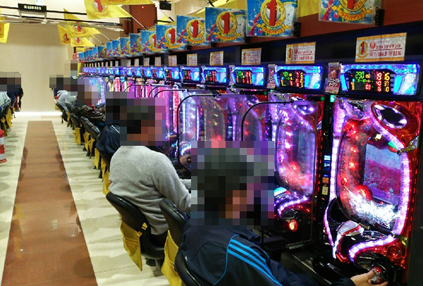朝に引き続き、1円パチンコのコーナーも盛況。